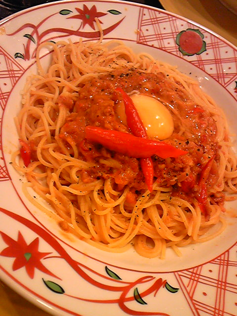 京都四条河原町阪急の中の「先斗入ル」のパスタ。美味しかったけど、注文した品が来るまでに30分以上待ったヨ。
