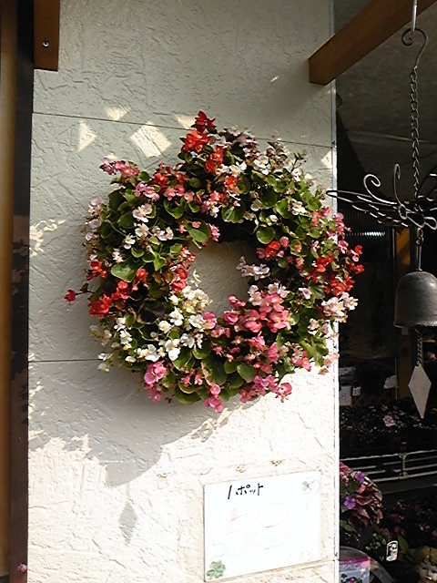 地元の「野菜のコンビニ」と自称する産地直売のお店にあった花のリース。