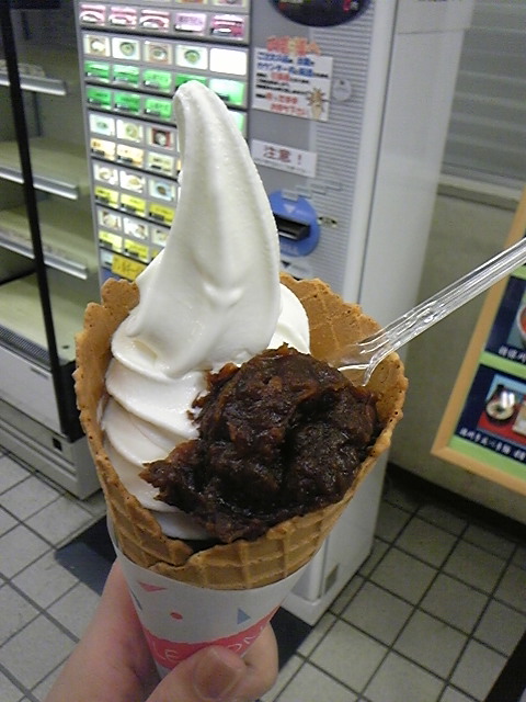 小豆が一緒になってて、ソフトクリームだけだとしょっぱく感じるけれど一緒に食べると良い塩梅でした☆